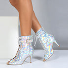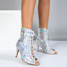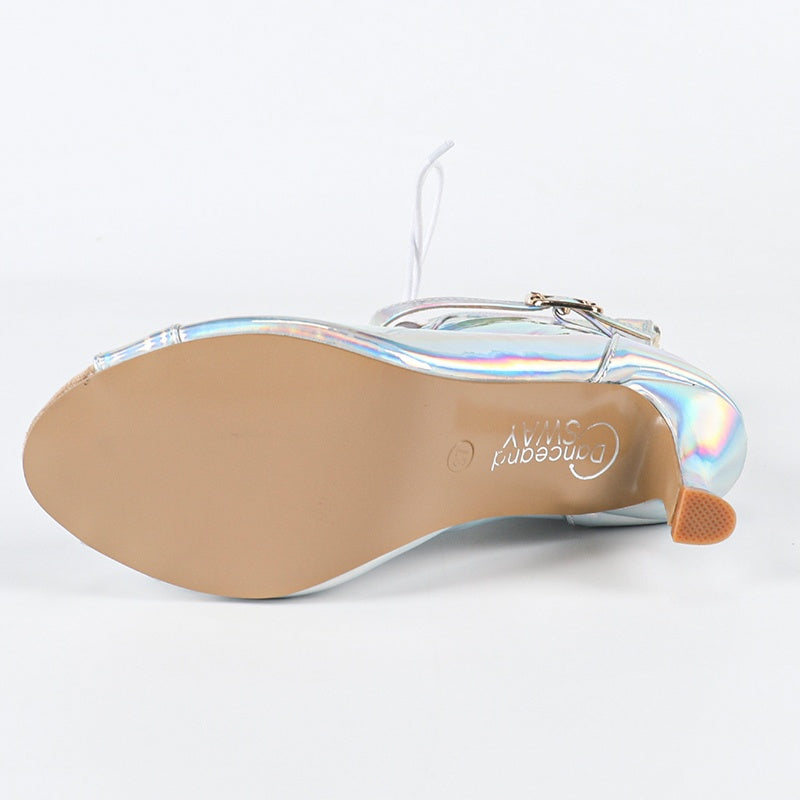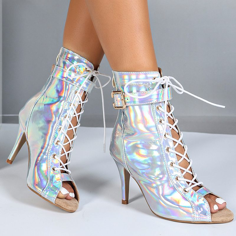 DS Chaussures de danse jazz à lacets en PU pour femmes, talon de 9 cm, semelle en caoutchouc