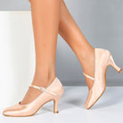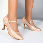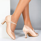 Talons personnalisés en satin brun clair pour femmes chaussures de danse moderne de salle de bal.