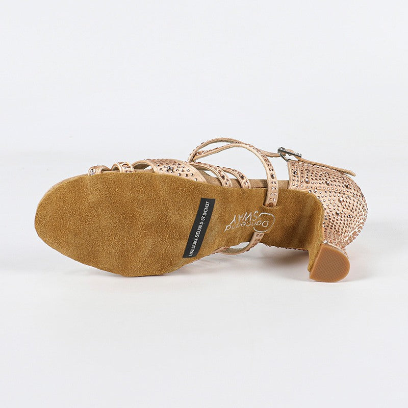 Chaussures de danse latine à talons personnalisés en satin et strass pour femmes DS