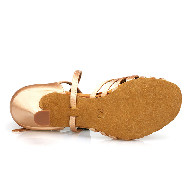 Champagne féminin satin 7,5 cm talon à lacets Chaussures de danse latine
