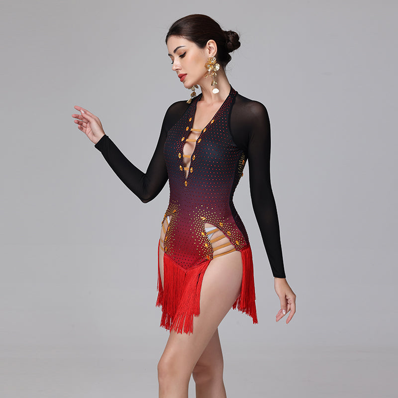 Yzy personnalisable-women's noire à manches longues à manches longues de danse de danse de danse de danse Performance