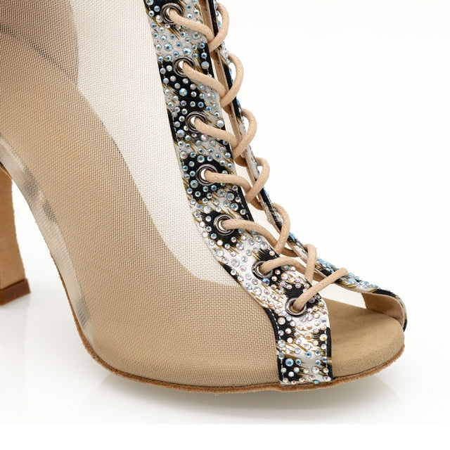 Satin Rhingestone Bottes de danse à talon personnalisés Chaussures salsa chaussures de danse de salon