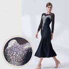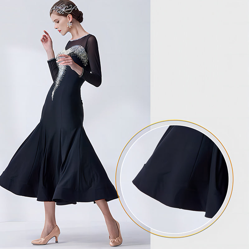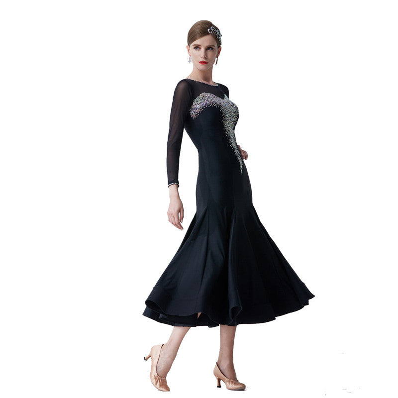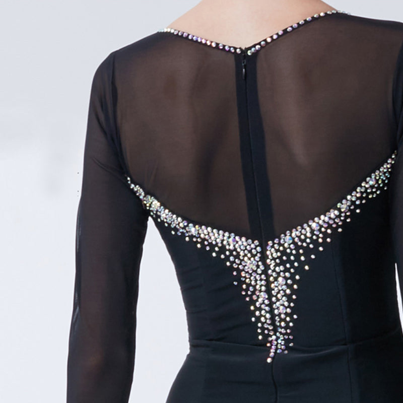 Robe de danse de salon à manches longues en maille diamantée personnalisable YUN pour femme, robe standard/lisse