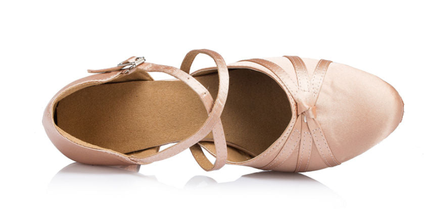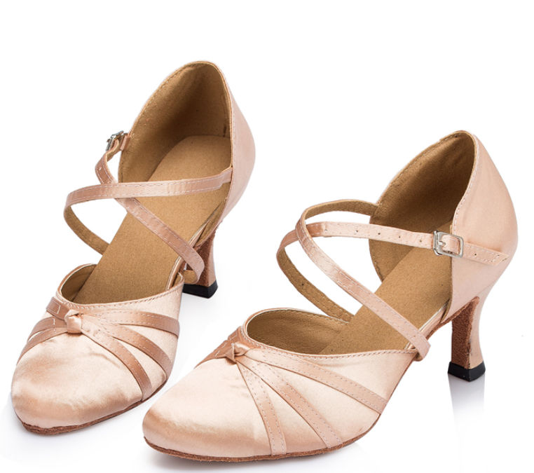 Scarpe da ballo da sala con tacco personalizzato in raso da donna, scarpe da ballo moderne