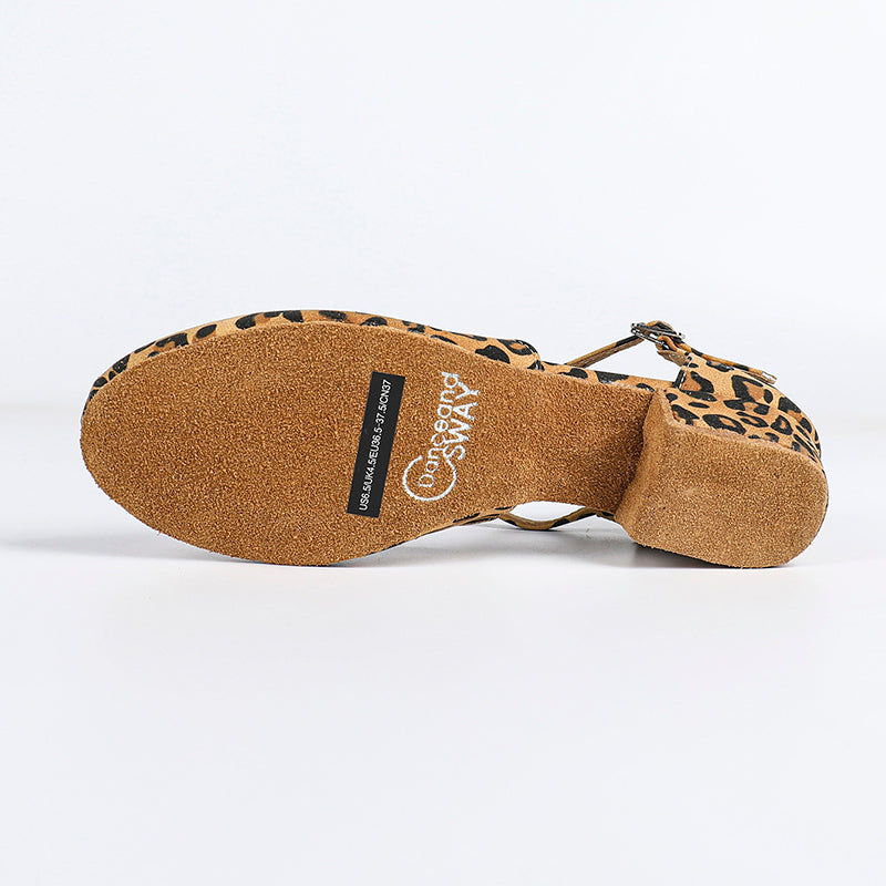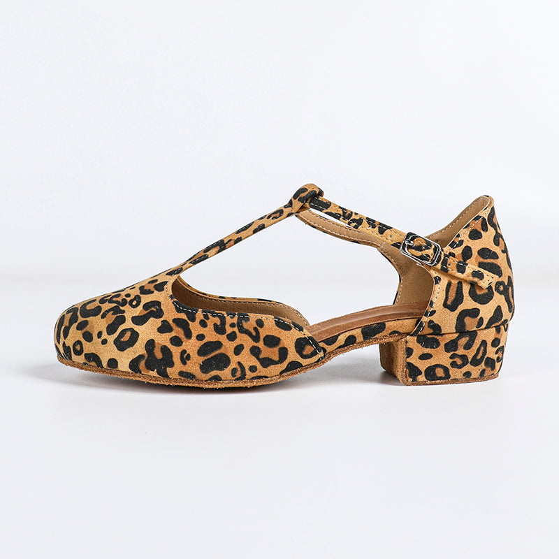 Scarpe da ballo da sala con cinturino a T da donna, in nabuk leopardato, con tacco personalizzato, scarpe da ballo swing