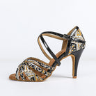 Scarpe da ballo latino da donna in raso con tacco personalizzato, scarpe da ballo da sala