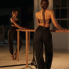 Pantaloni da ballo latino-americani da donna, a vita alta, neri, da allenamento