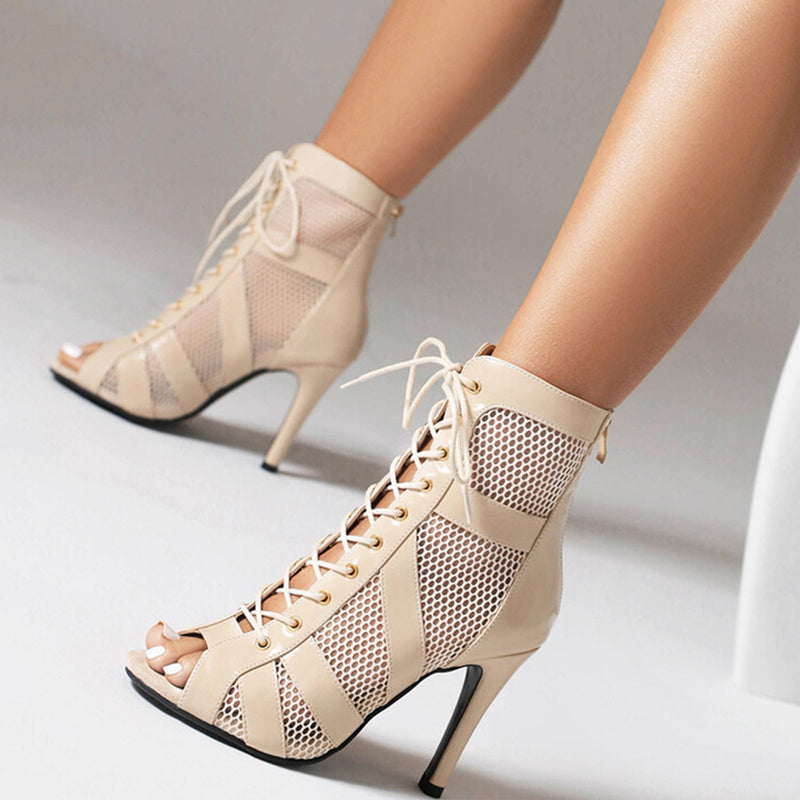 Stivali da ballerina AJ da donna con suola in gomma PU, tacco 11 cm/9 cm, scarpe da ballo jazz e salsa