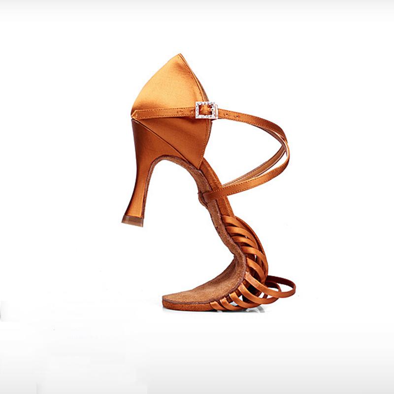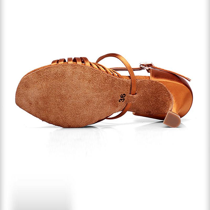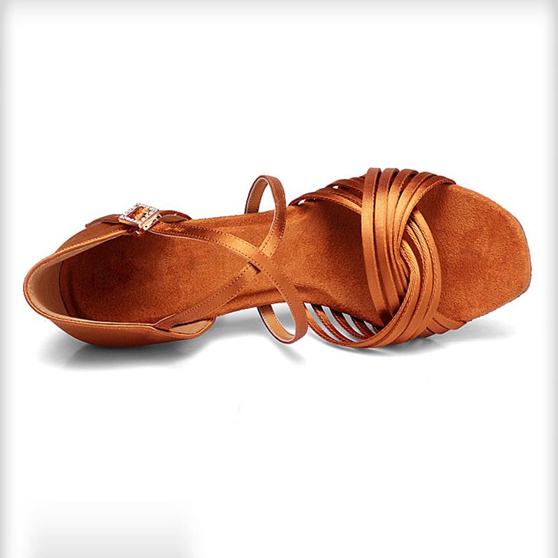 Scarpe da ballo latino da donna in raso marrone con tacco personalizzato