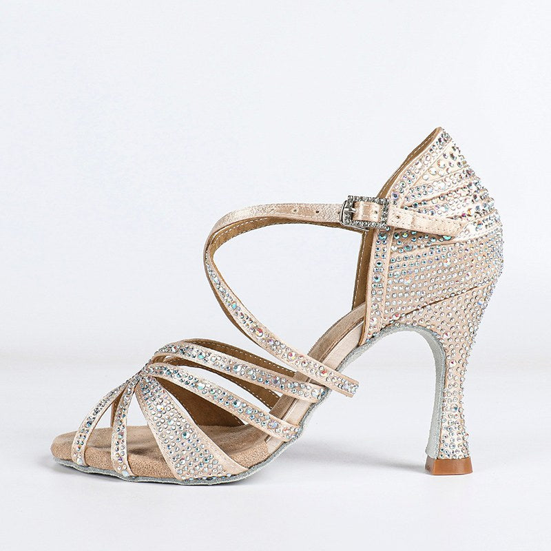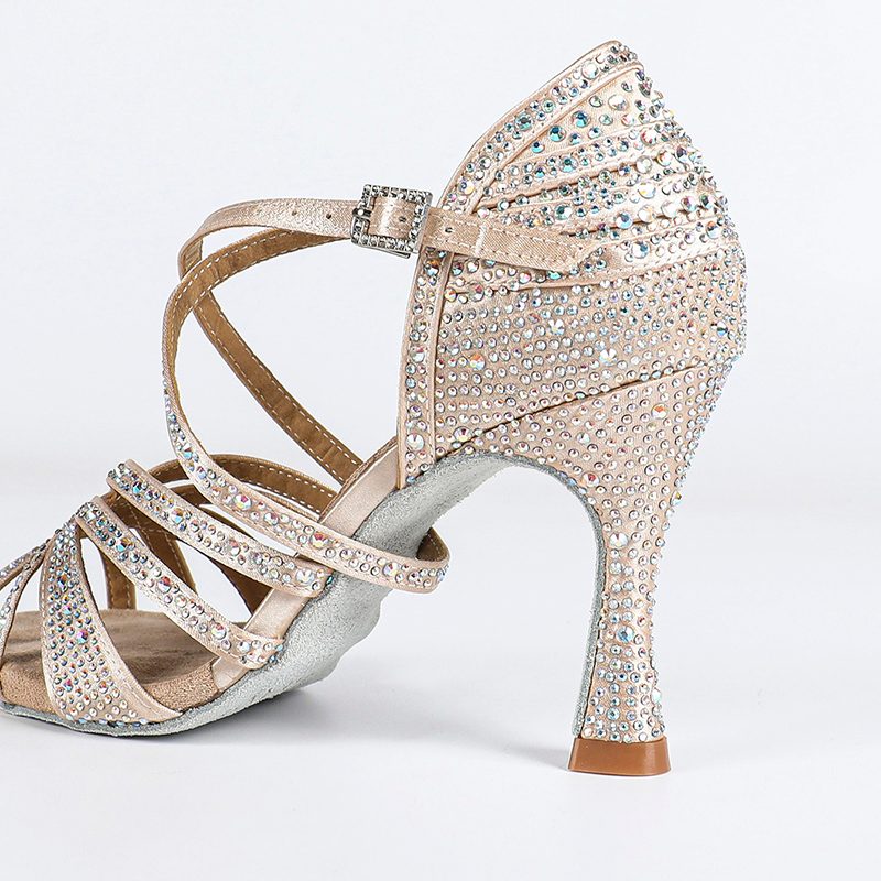 Scarpe da ballo con il tacco a punta di punta personalizzata da donna con cristalli