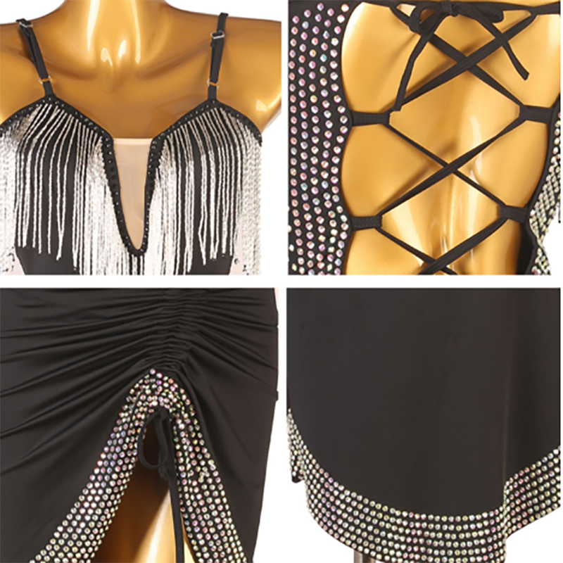 Abito da ballo latino da danza da paillettes di WaselSel di Women Uassel Rumba Dance Abiti per esibirsi Abiti per esibizione