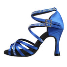 HW Women's Blue Personalized Tallo Strappy Satin di Rinestone Dance Teli latino Dance Scarpe