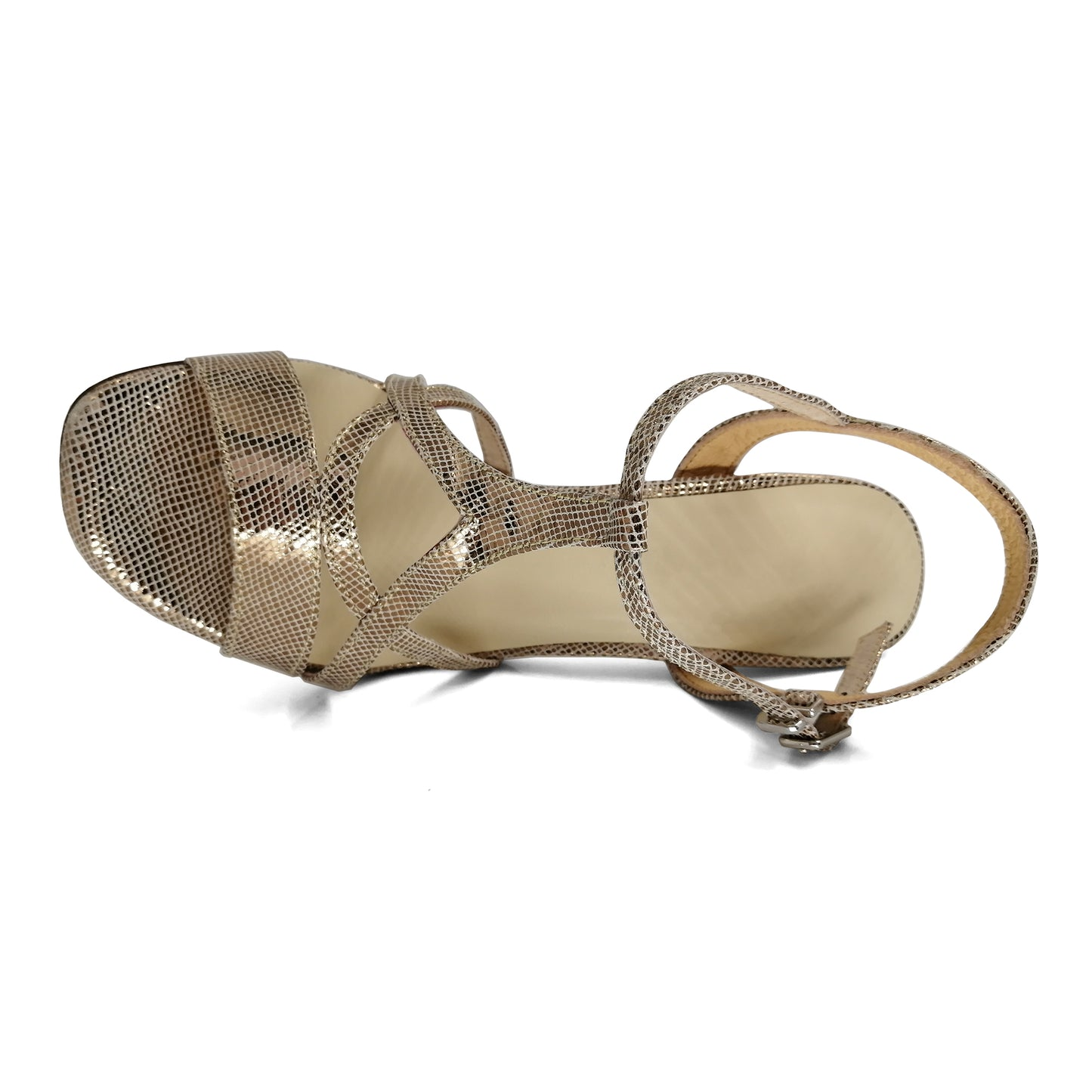 Scarpe da ballo e tango SHJ da donna in vera pelle color champagne con tacco 7 cm/9 cm