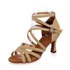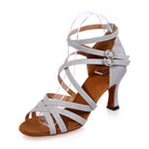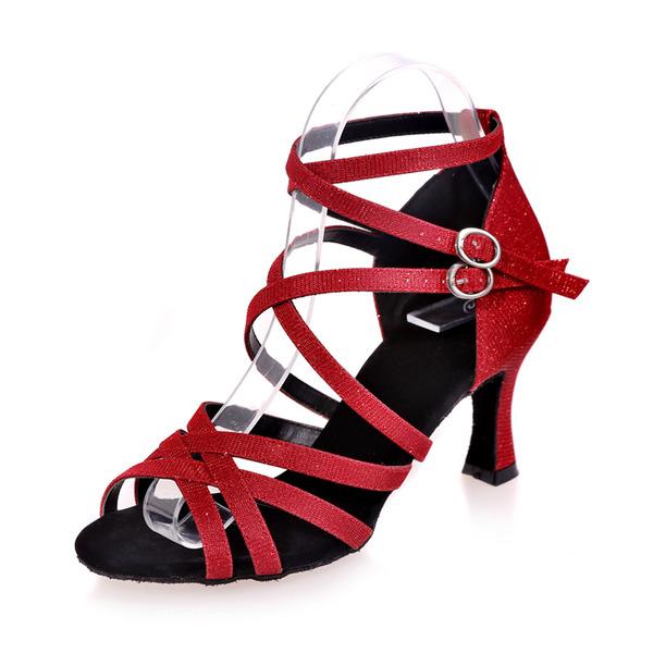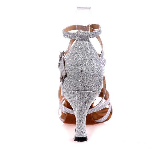Scarpe da ballo latino da donna con tacco personalizzato e glitter scintillanti