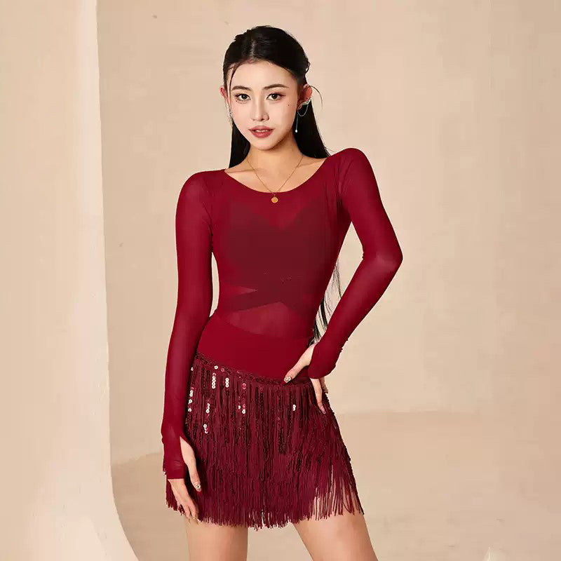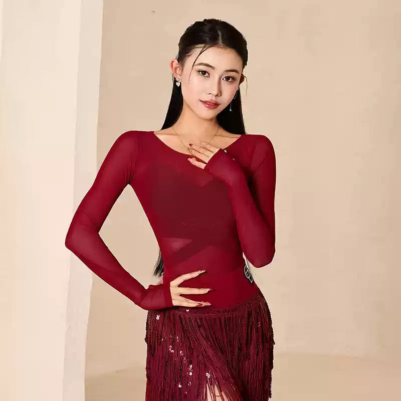 YES Body da ballo a maniche lunghe rosso da donna, per allenamento e danza