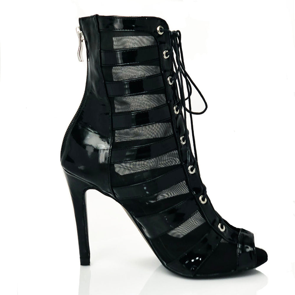 ALB Women's Customized Heel Vegan Leather Heels Lace-up Rubber Sole Dance Boots Jazz Salsa Street Sole Dance Shoes