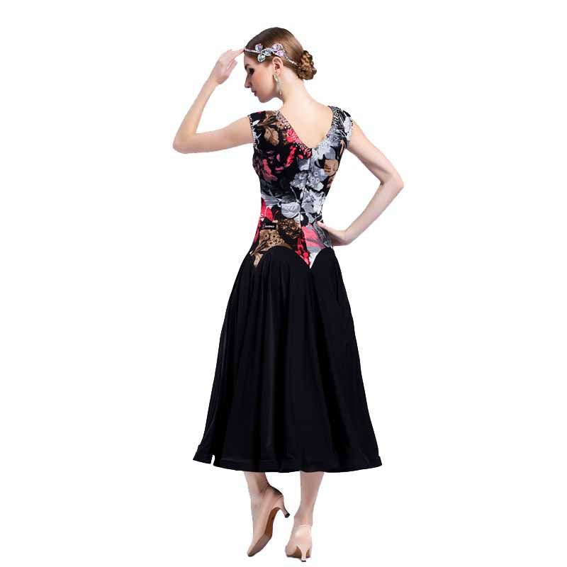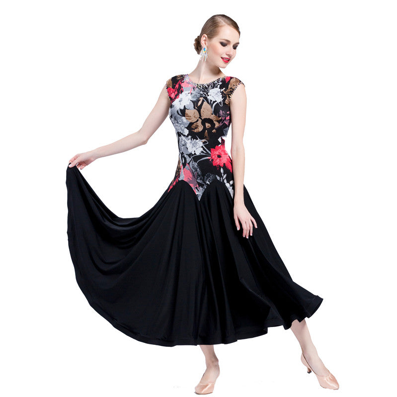 YUN Customisable-Women's Sleeveless Floral Print Dress For Ballroom Dancing Smooth Dress