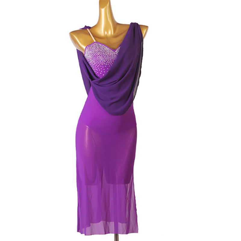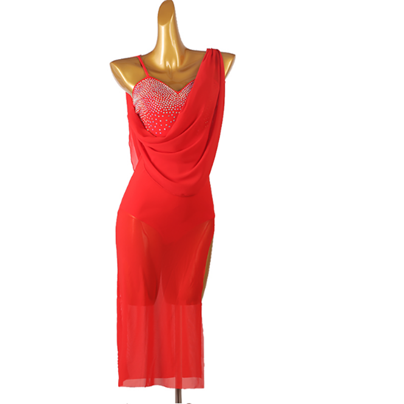 Customisable-Women's One Shoulder Latin Dance Dress Rumba Dance Practice Dresses Performance Dresses