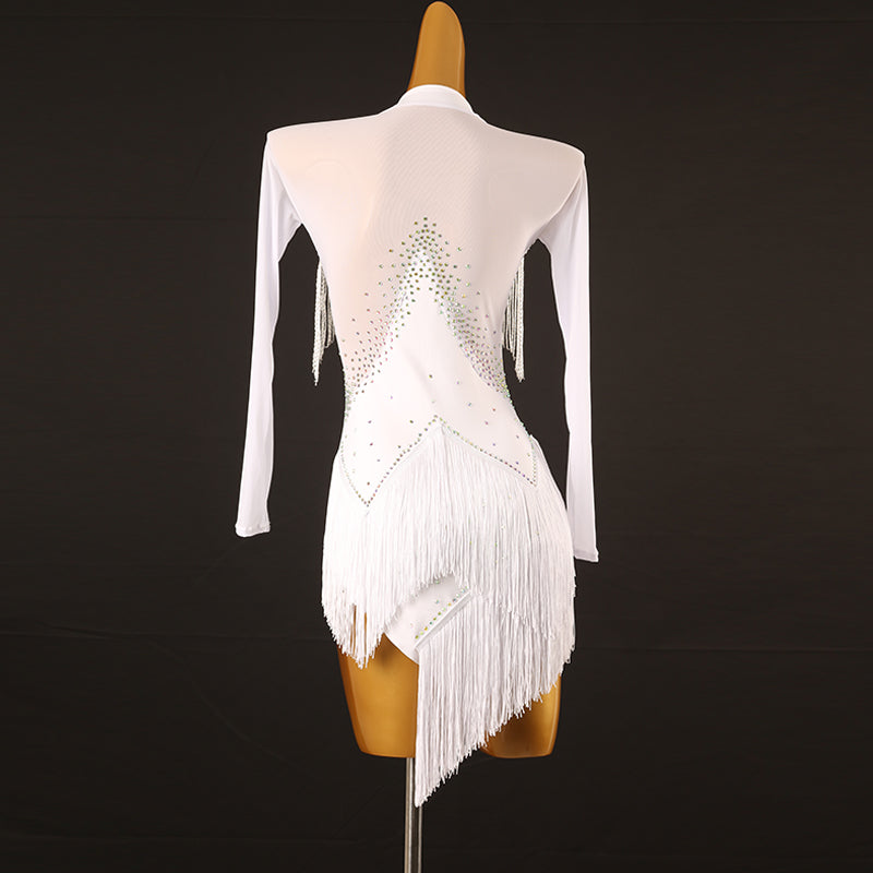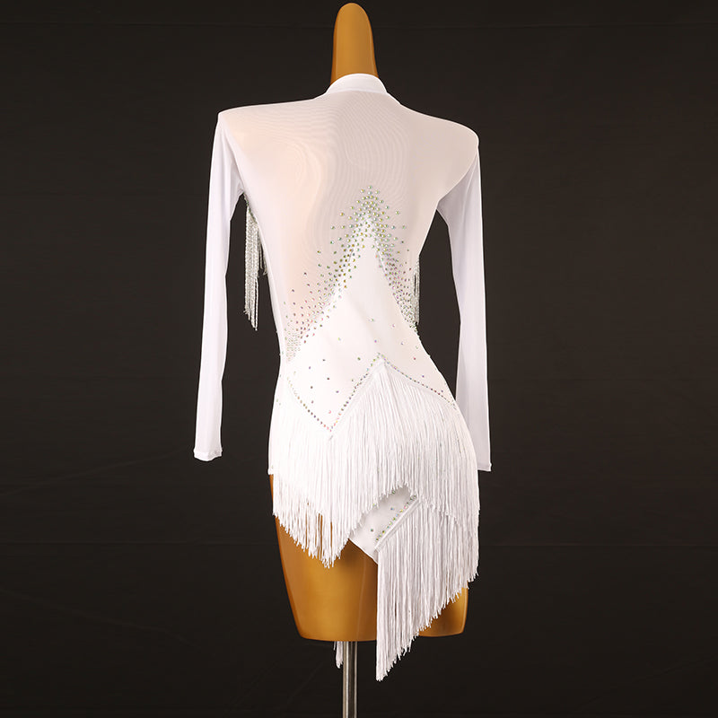 Customisable-Women's Performance Long Sleeve Tassel Latin Salsa Dance Dress Competition Dress