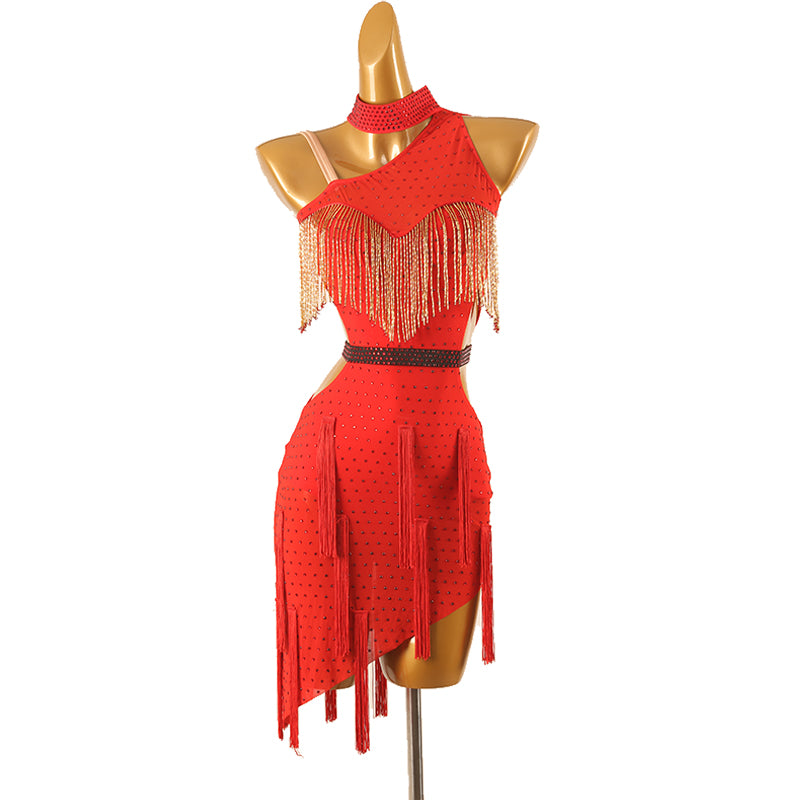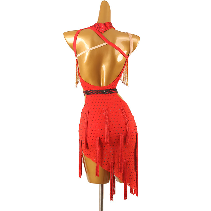 Customisable-Women's Performance Sleeveless Tassels Latin Salsa Dance Dress Competition Dress