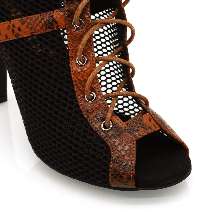 Women's Brown Customized Heel Peep Toe Hollow-out Heels Dance Boots Jazz Salsa Dancing Shoes