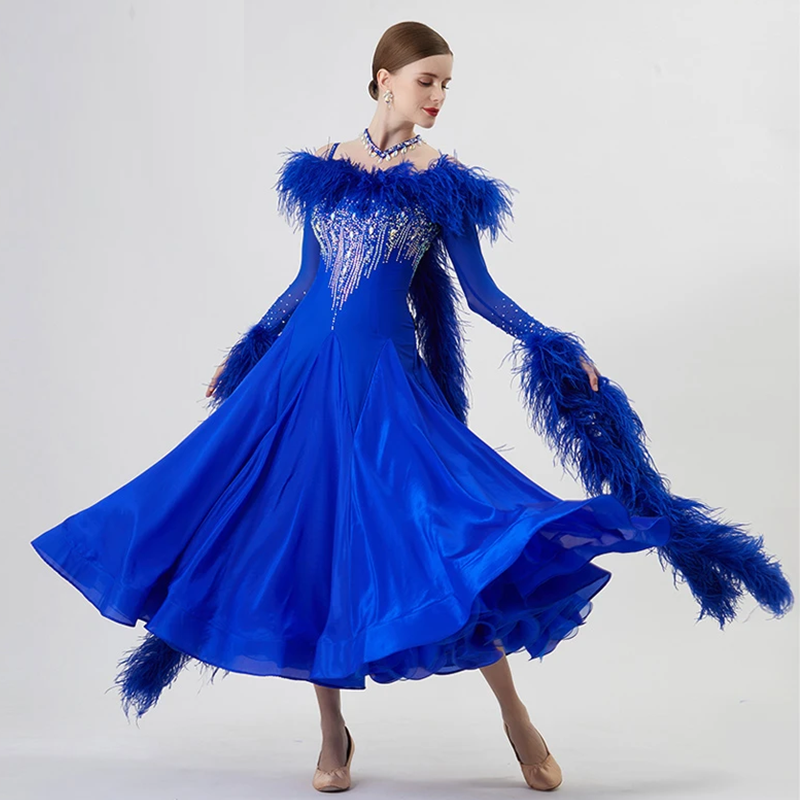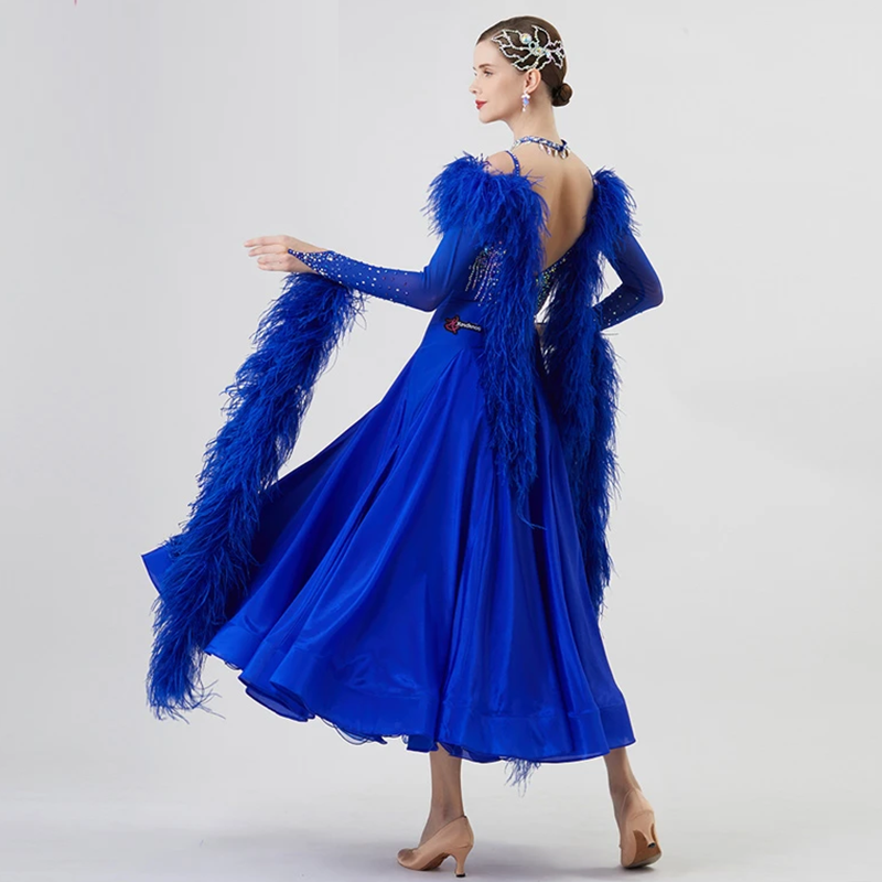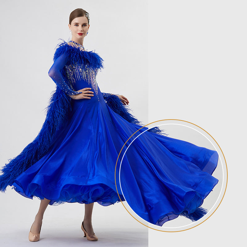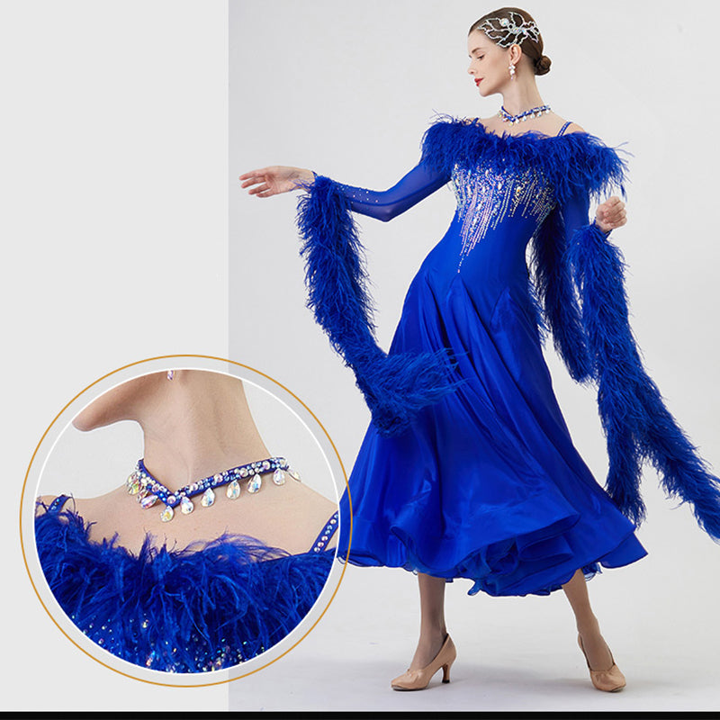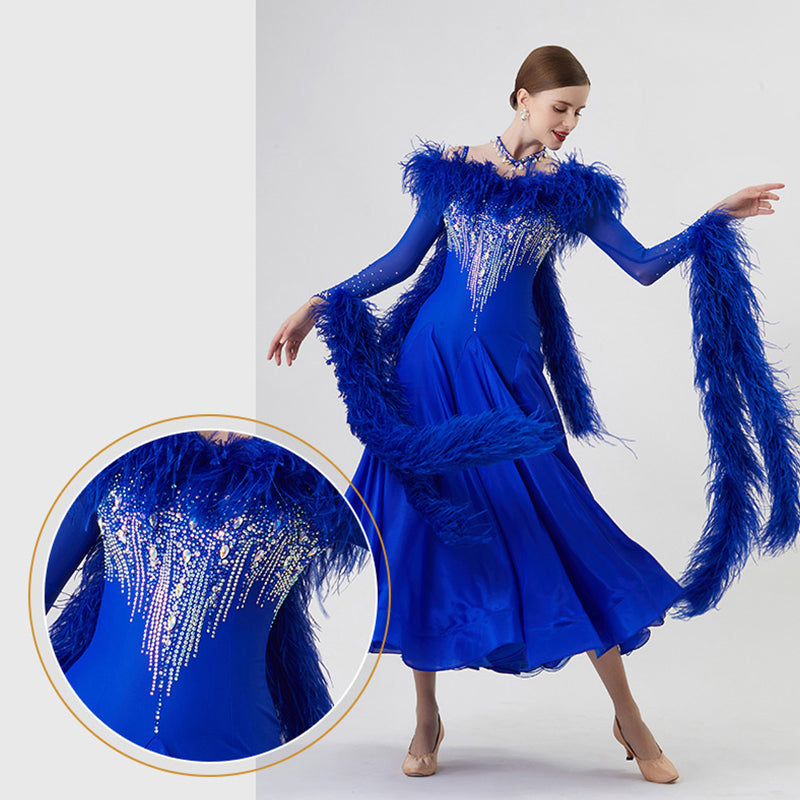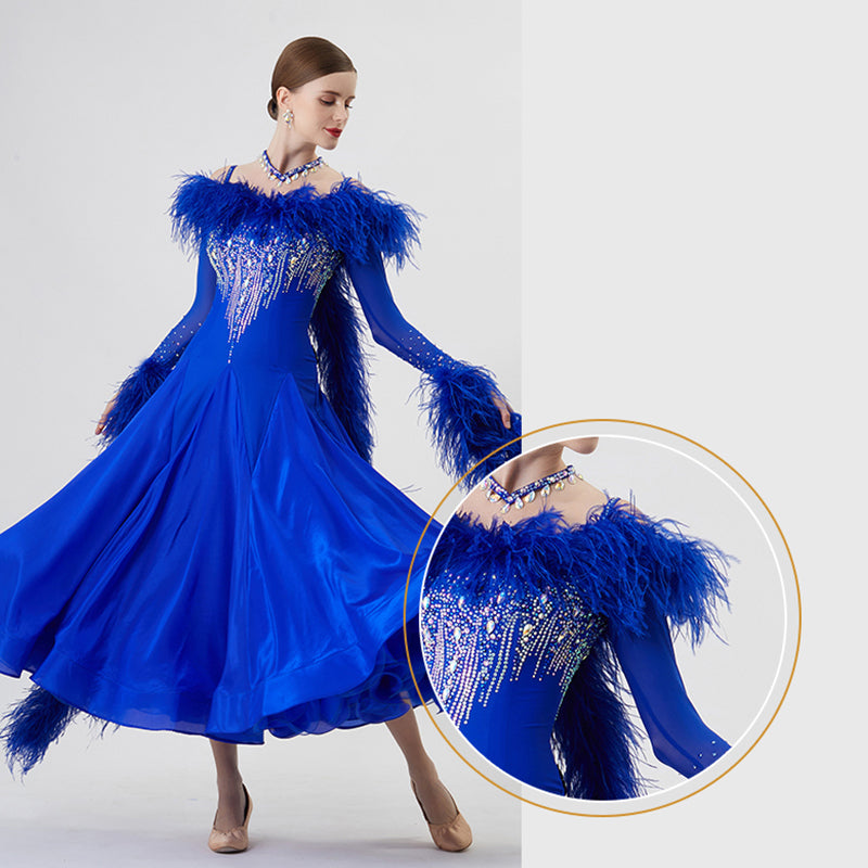 YUN Customisable-Women's Long Sleeve Backless Diamonds Waltz Modern Ballroom Dance Dress Competition Dresses (With Necklace)