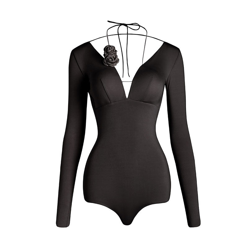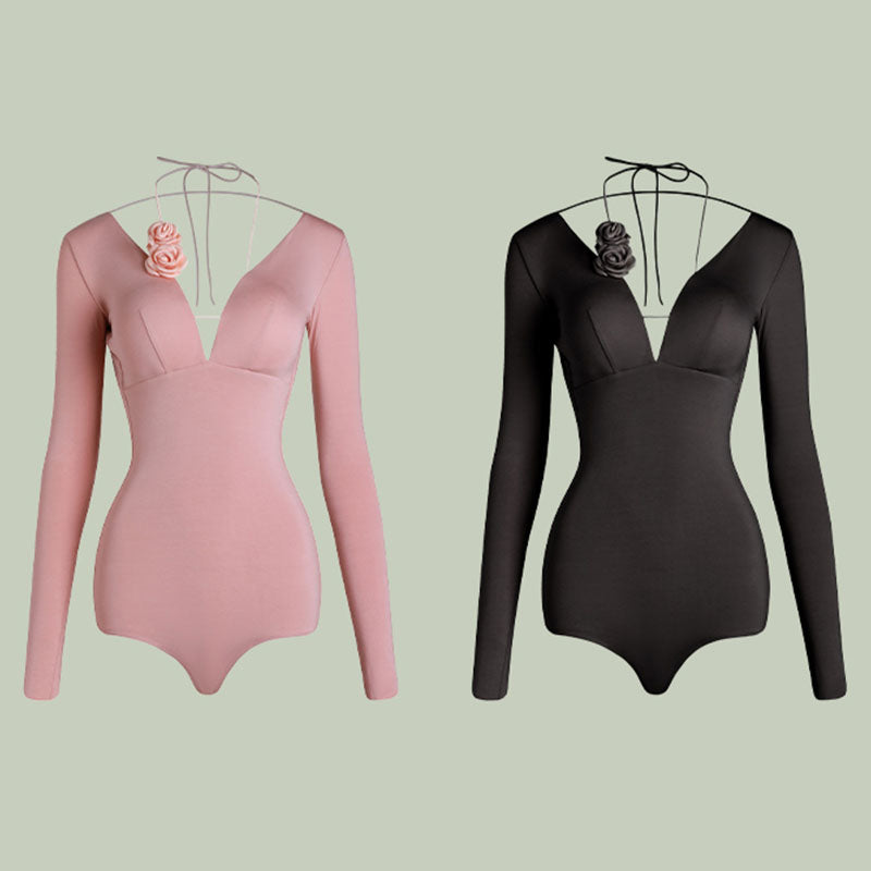 Z Women's Long Sleeve Flower Latin Dance Wear Dance Tops Bodysuit
