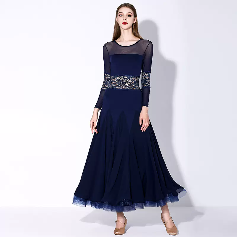 Women's Dark Blue Modern Dance Performance Dress Waltz Ballroom Dance Dress