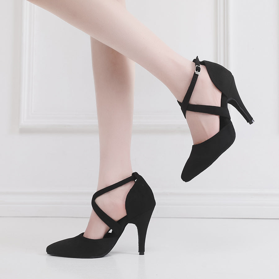Women's 10cm Heel Velvet Dance Heels Ballroom Dance Shoes