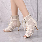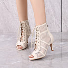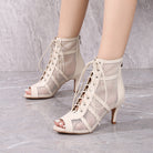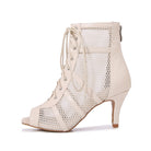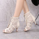 Women's Beige Customized Dance Heels Rubber Sole Peep Toe Lace-up Jazz Shoes Dance Boots