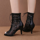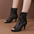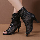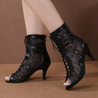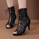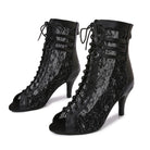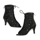 Women's Black Customized Dance Heels Rubber Sole Peep Toe Lace-up Jazz Shoes Dance Boots