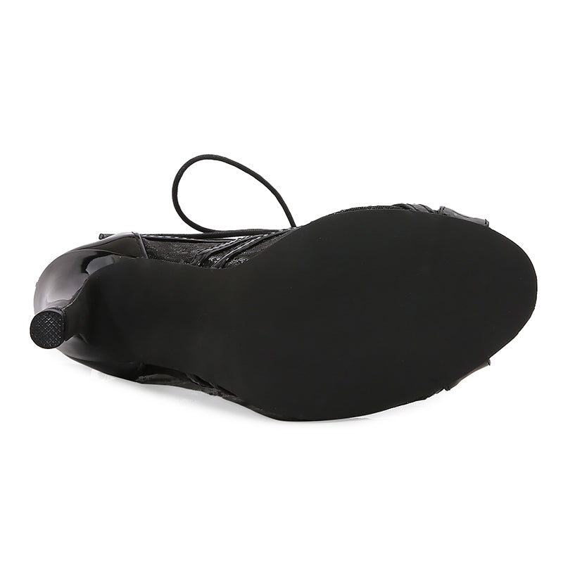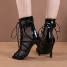 Women's Black Customized Dance Heels Rubber Sole Peep Toe Lace-up Jazz Shoes Dance Boots