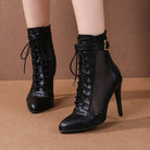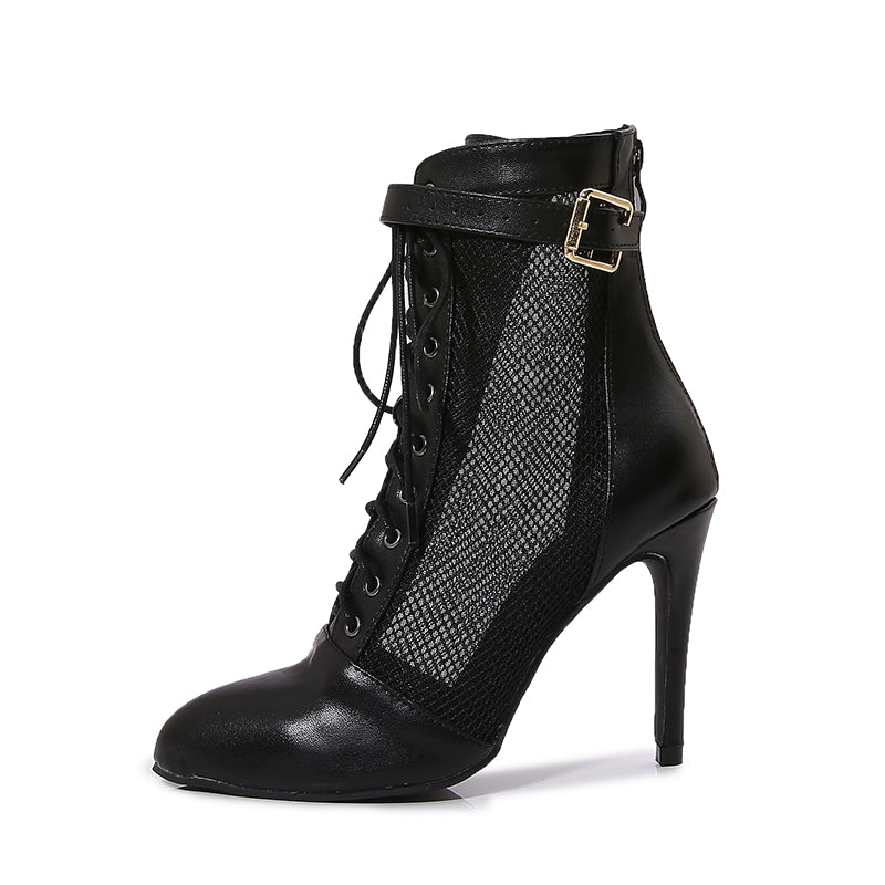 Women's Black 10.5cm Heels Rubber Lace-up Jazz Shoes Dance Boots
