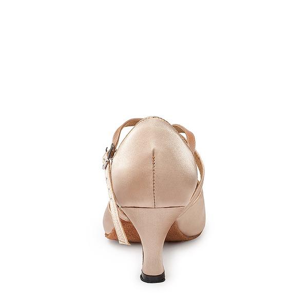 Women's Flesh Pink Satin Customized Heel Closed Toe Ballroom Dance Shoes Modern Shoes
