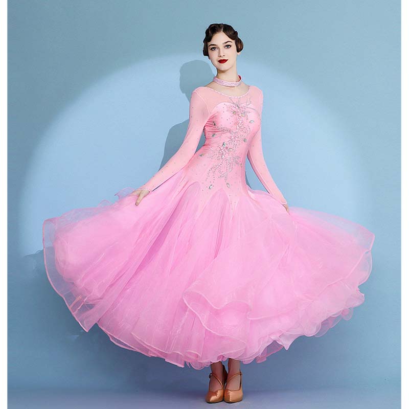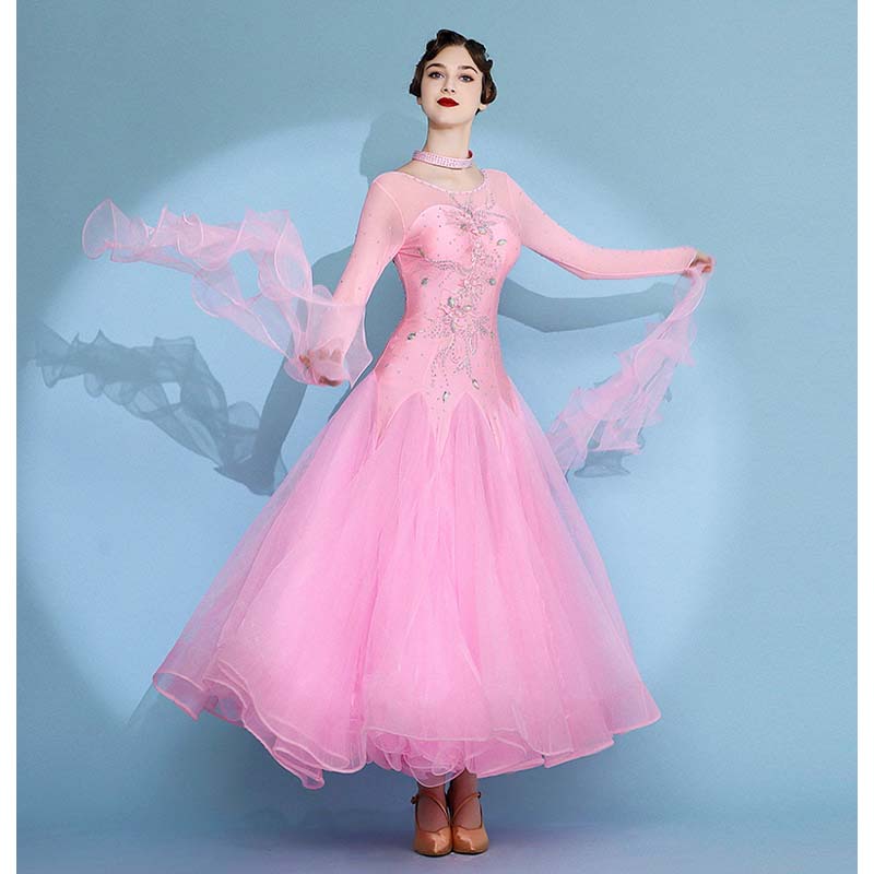 Women's Long Sleeve Waltz Modern Ballroom Dance Dress Competition Dresses Performance wear