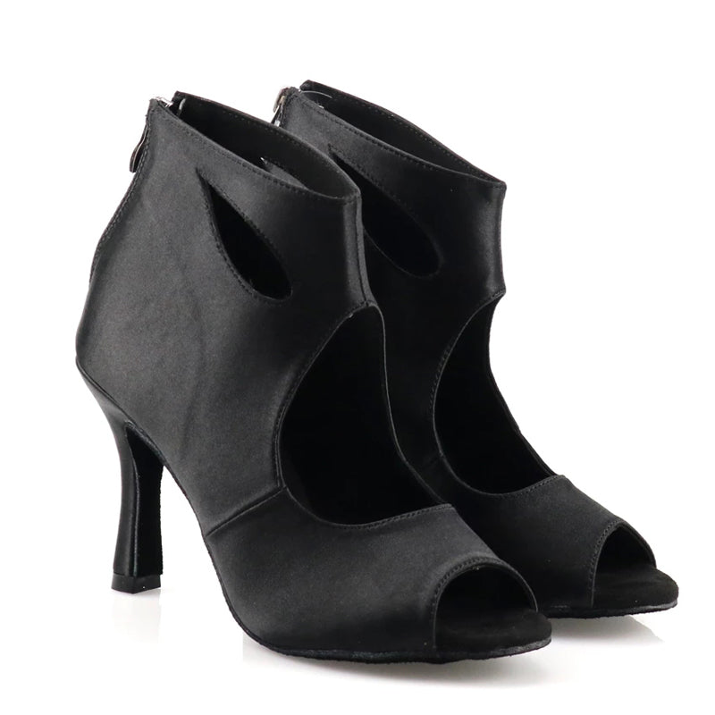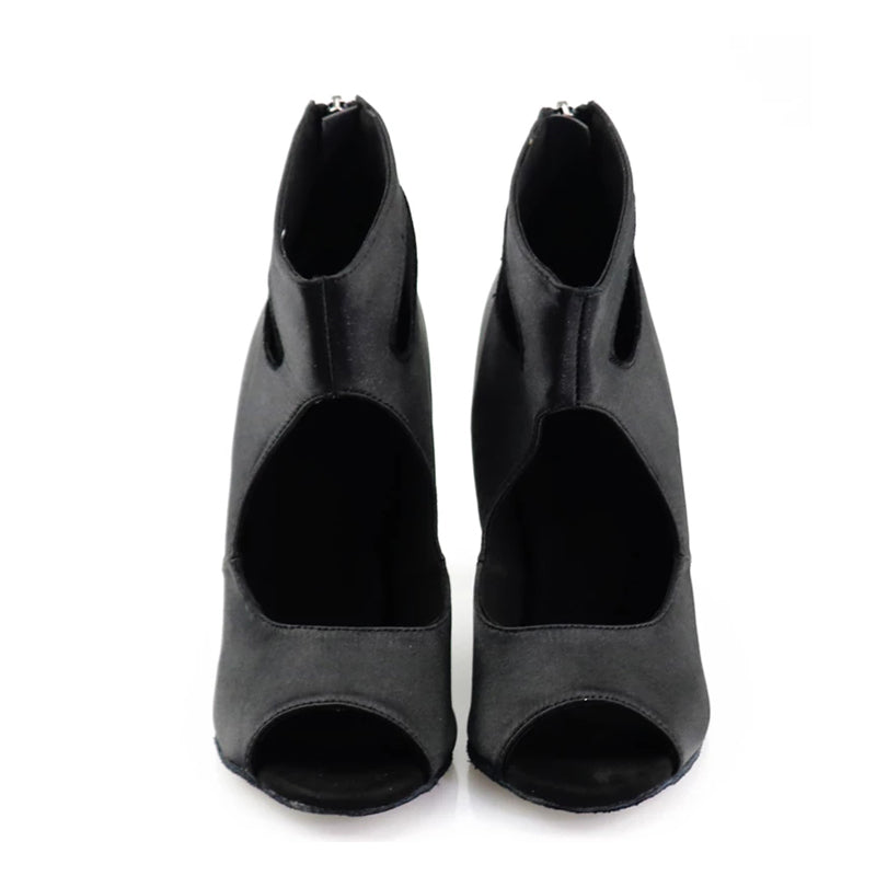 Women's Satin Open Toe Customized Heels Dance Boots Jazz Salsa Dancing Shoes