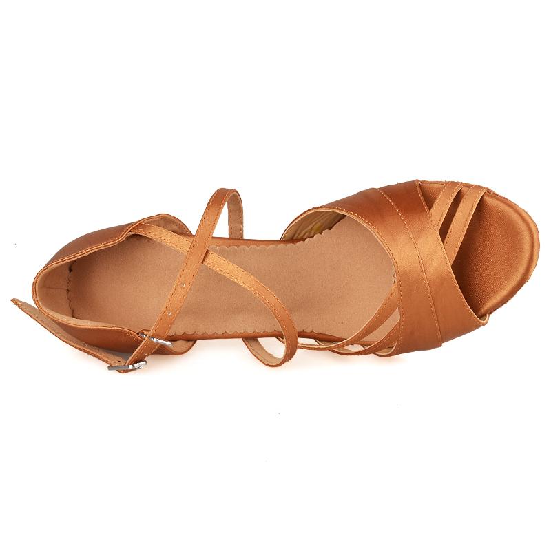 Women's Brown Satin Customized Heel Ballroom Latin Dance Shoes