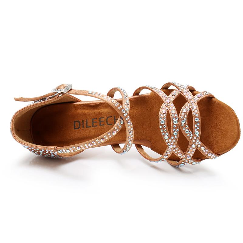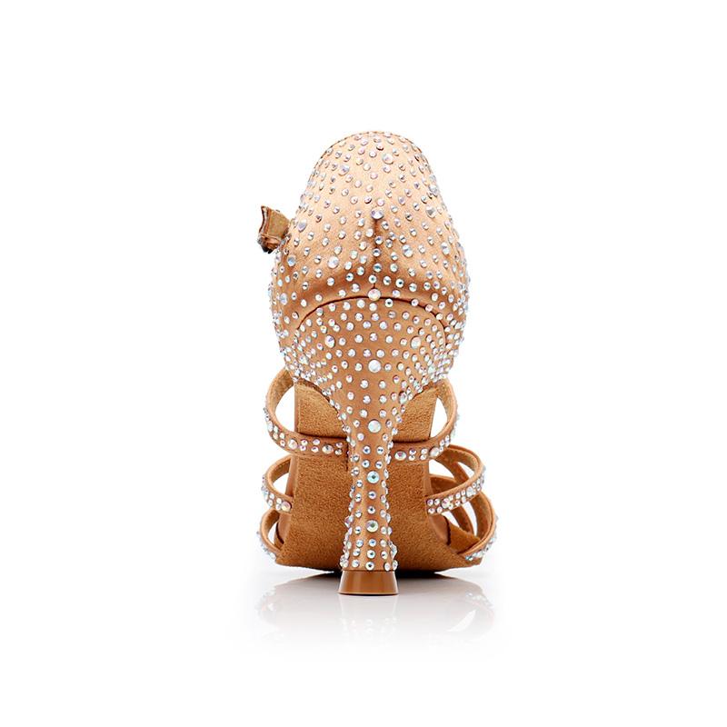 Women's Bronze Satin Rhinestone Customized Heels Ballroom Latin Dance Shoes