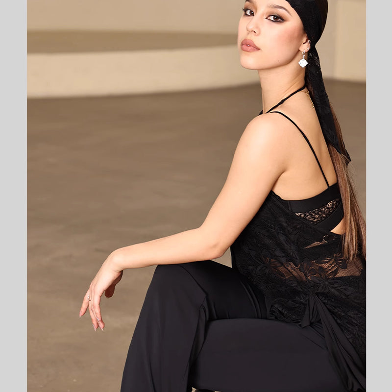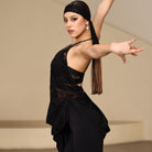 YES Women's Sleeveless Latin Dance Dress Dance Wear Training Performance Dress(With Headband)