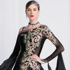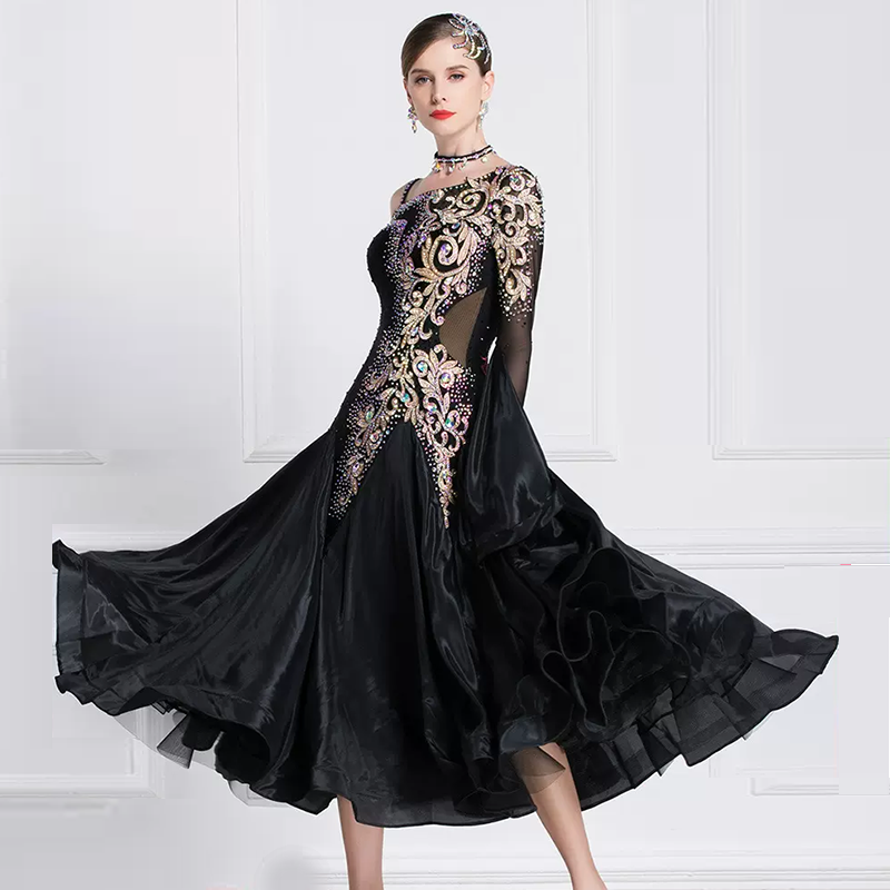 YUN Customisable-Women's Long Sleeve Off Shoulder Backless Diamonds Dress For Ballroom Dancing Smooth Dress