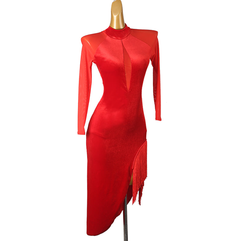 YZY Customisable-Women's Long Sleeve Red Tassel DanceWear Dance Dress Performance Wear